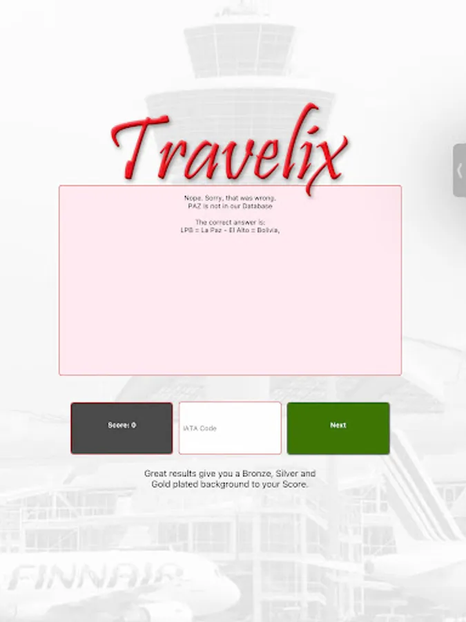 Users chase the three star, gold level by trying and learning Iata airport codes.