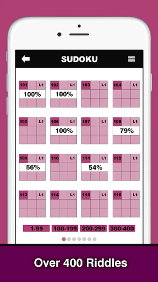 • 400 premium Sudoku puzzles, hand-sorted and hand-picked