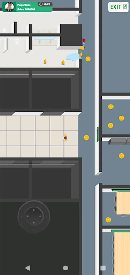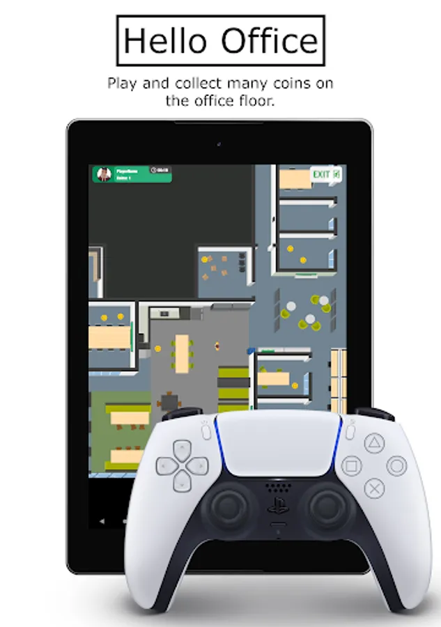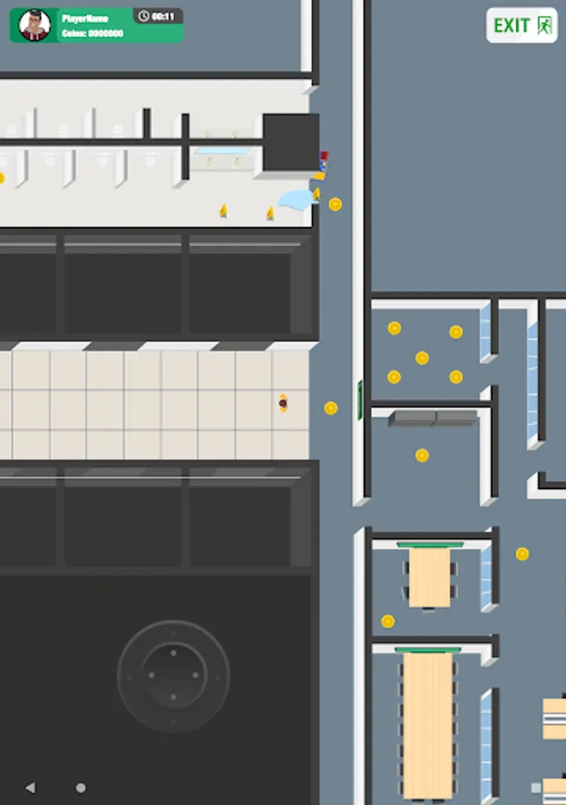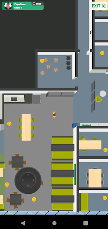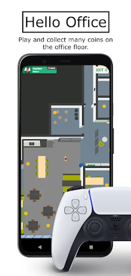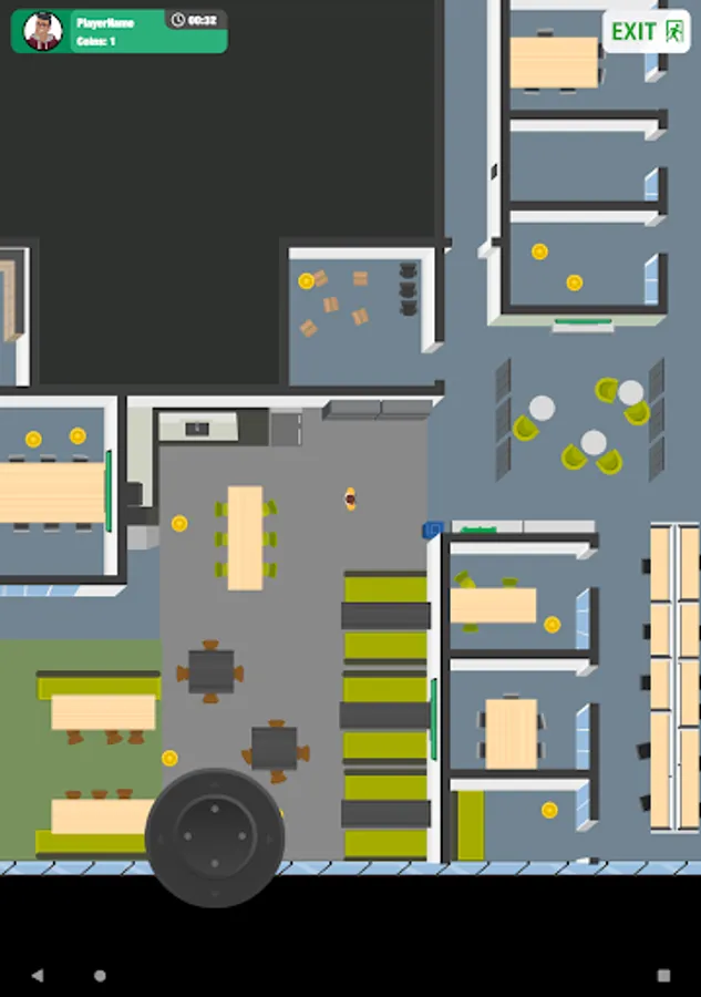Walk inside the office and discover each room. Just like on the real-world office floor you will see a computer room, meeting room, and a small micro kitchen. The goal is for you to collect as many yellow shining coins on the floor. And be the first on the group of your network friends to win the reward.