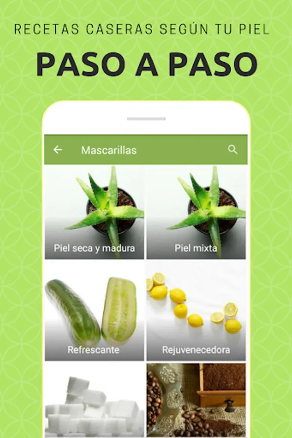 All kinds of natural masks to hydrate the skin, exfoliate, eliminate dead cells, reaffirm expression lines, eliminate facial blemishes, eliminate acne. They are all natural masks, ingredients you have at home and cheap.