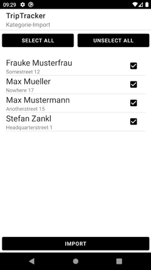 Select desired contacts out of your phone book and import them to TripTracker as "Category".