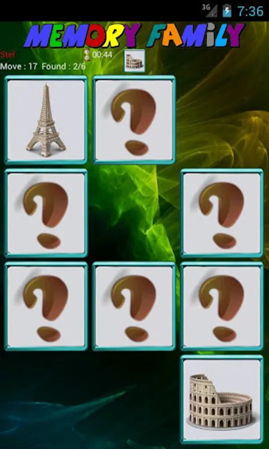 Mode "Arcade": Find the pairs and trios with a max number of trials and trying to get to the highest level.