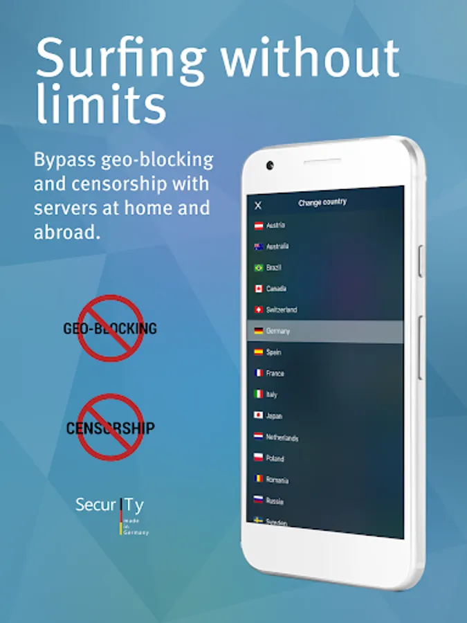 Thanks to VPN encryption of your Internet connection, you are tap-proof and anonymous when traveling worldwide.