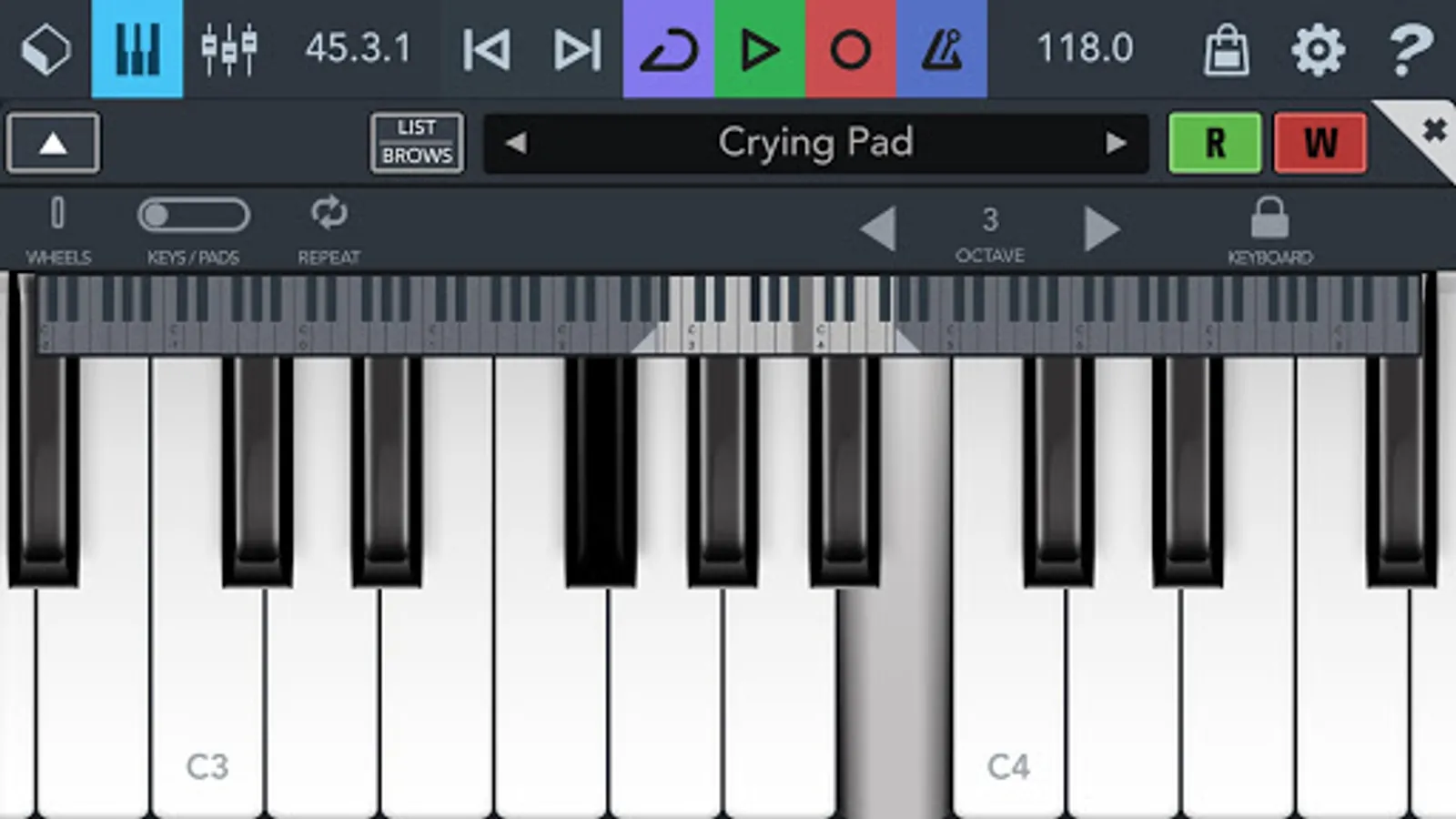 • Virtual keyboard with chord buttons, chord and drum pads with intuitive note repeat