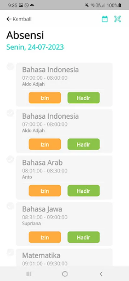 Student attendance information received in real-time by parents/guardians of students.