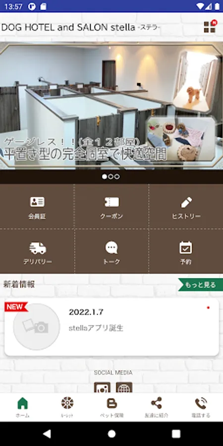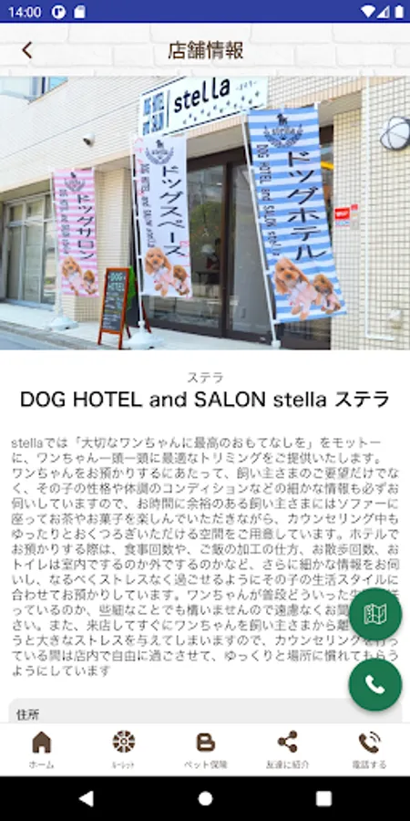 stella is a cageless, completely private pet hotel, pet salon, and a store with a large selection of specialty products. We aim to be a restaurant that will satisfy families who use the motto "The best hospitality for your precious dog".