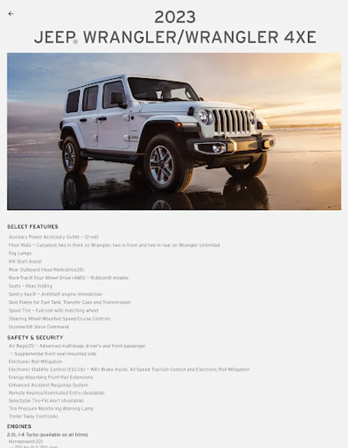 The 2023 Stellantis Fleet App showcases the full-line Buyer's Guide for the Chrysler, Jeep, Dodge, Ram and FIAT brands in a user-friendly, touch based format. This app offers the Fleet sales force and customers the opportunity to research detailed information about 2023 Model Year vehicles offered by Stellantis.