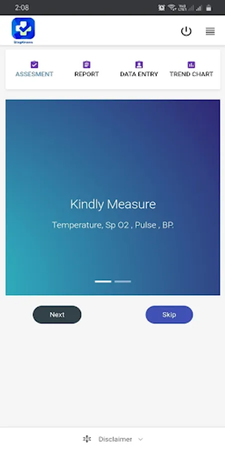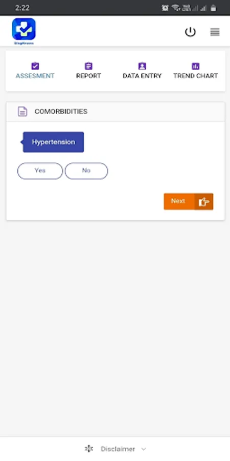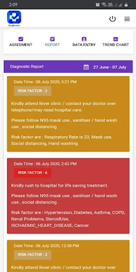This is a free medical app that screens the user for risks and symptoms of viral respiratory infections . It is based on basic clinical data input by the user along with yes or no answers to questions regarding their Comorbidities , Symptoms and health practices . The app triages the user based on this input by them and directs them to an appropriate level of healthcare if and as needed . This app can be used by all age groups - adults , elderly , adolescents , even children above 1 years of age . Apart from screening for respiratory illness this app can also be used for a regular digital health care check up from home