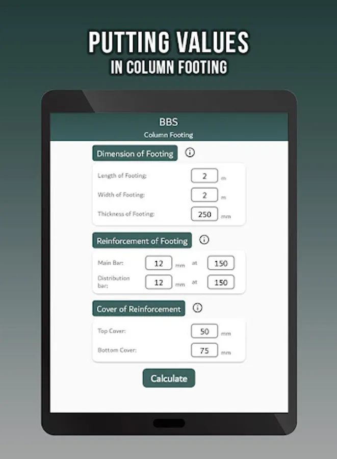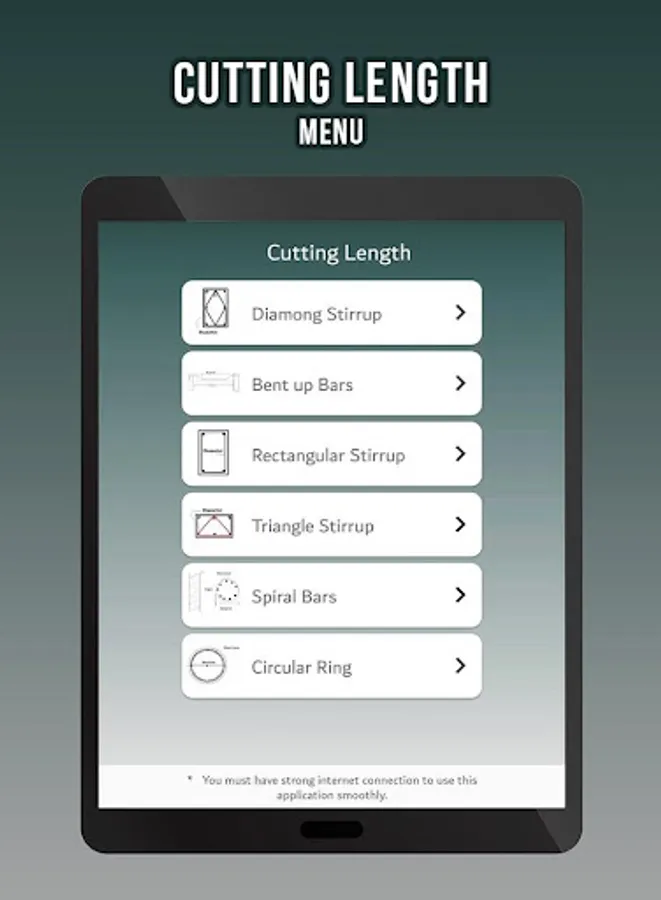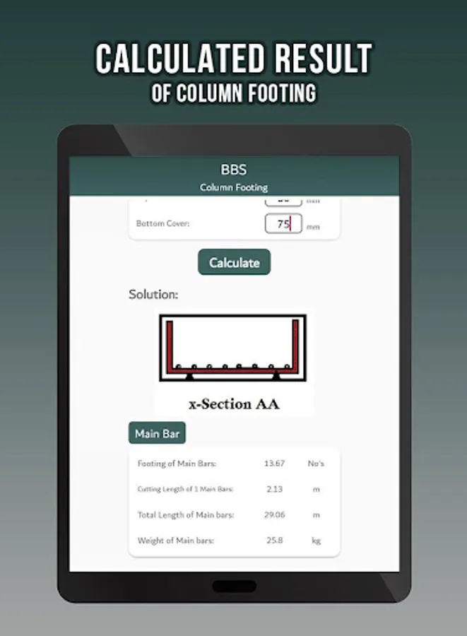 The cutting lengths were easily calculated by just putting the dimensions of the column, beam, slab etc. By using this app you are able to calculate the cutting length of,