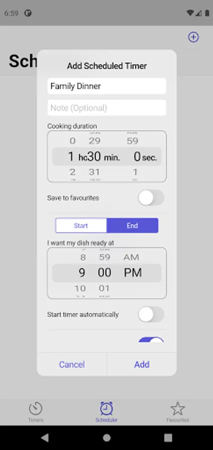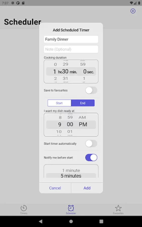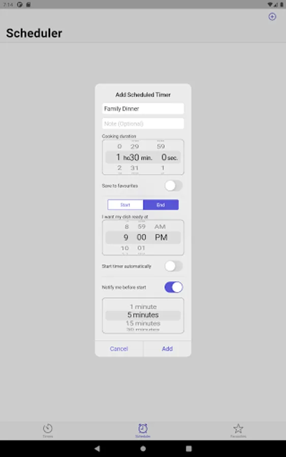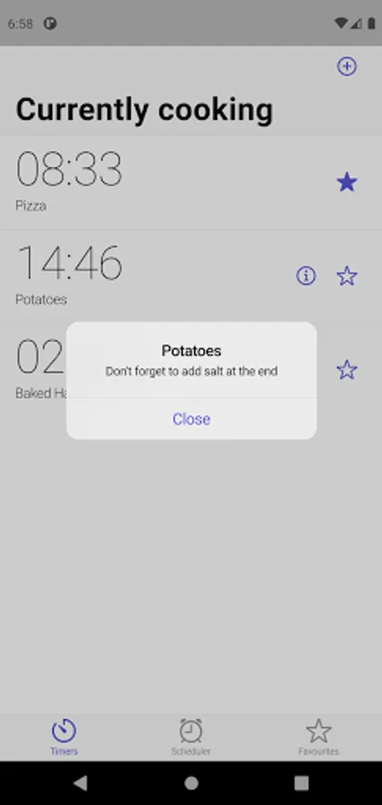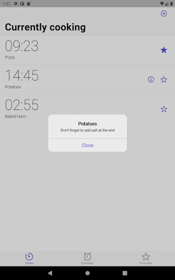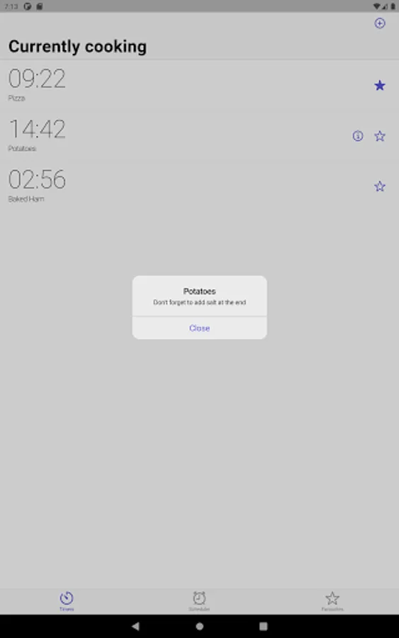 Are you preparing a dish often and do not want to set timers every time from the start? Save the timer to favourites and next time start it easily. This way you will never forget how much time certain specialty needs. You can also save notes to a certain timer so you don’t forget certain peculiarities.