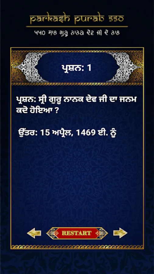 The primary objective of the Baba Nanak Mobile Application dedicated to 550th Birth Anniversary of Guru Nanak Dev Ji is to let people know various facts with the help of 550 Questions related to Guru Nanak Dev Ji’s Life journey. This app is built in three languages initially i.e Hindi, English & Punjabi. So as anyone can easily get the information in whatever languages are best understood by him/her.