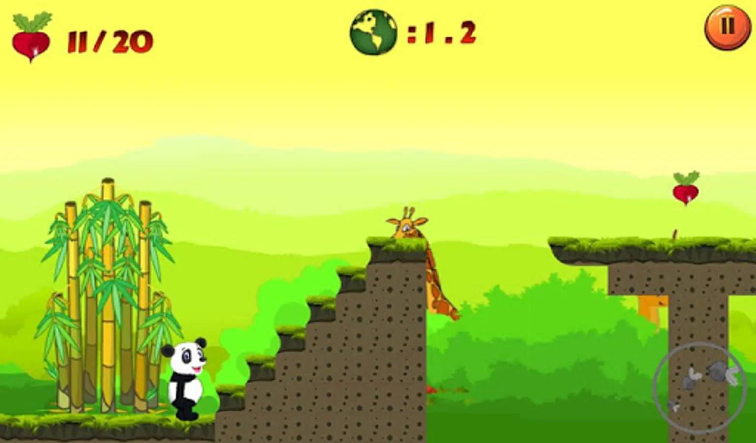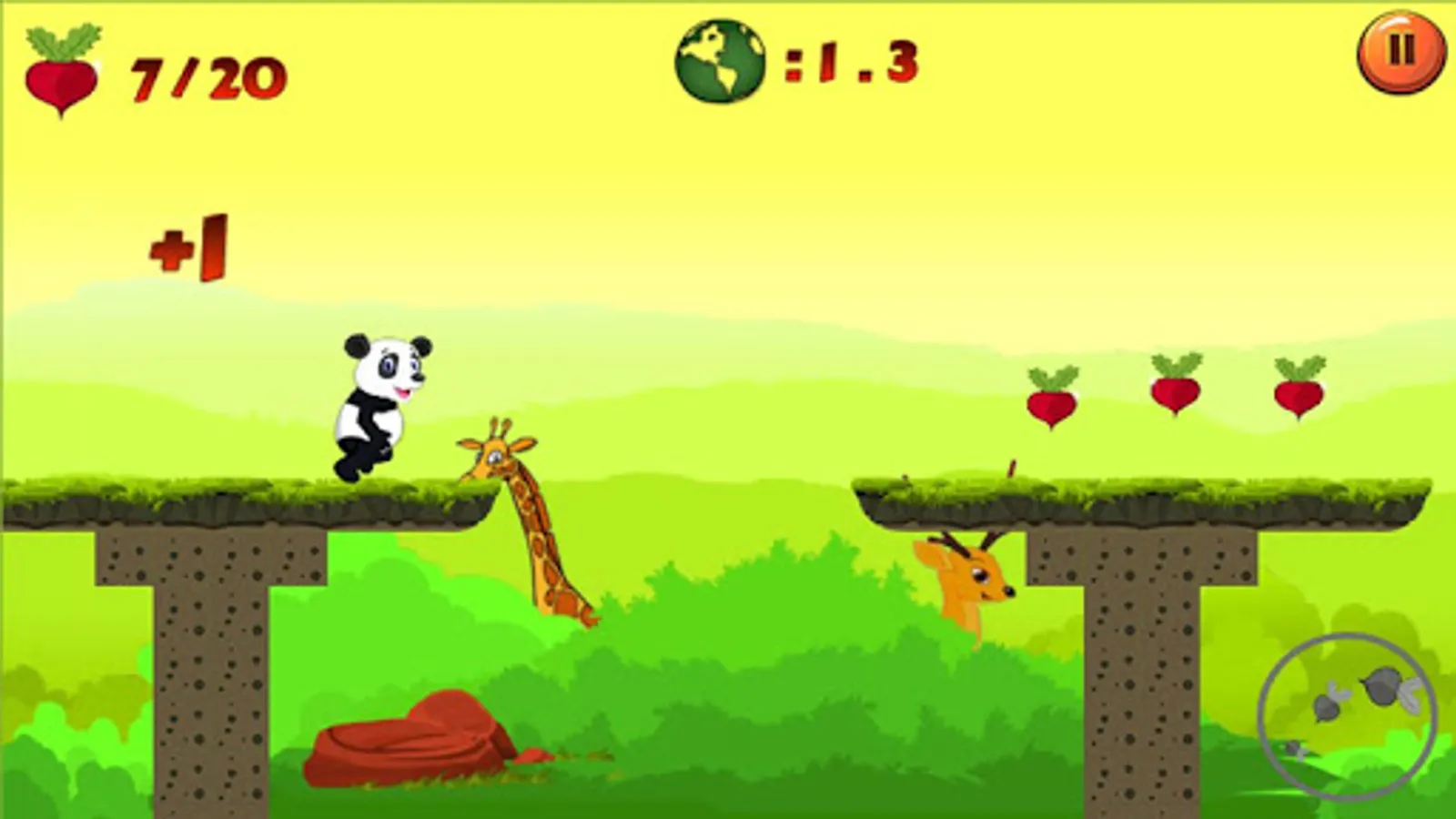 Jungle panda run!!! is a simple and addictive adventurous run game with simple controls. Our little panda is starving in jungle. Help our little panda to run and get all radishes from jungle without being caught by angry bear. Throw radishes while running to make the angry bear unconscious. Just click the screen to make our panda jump all obstacles in jungle including carnivorous plants and tap throw button and throw radish. This Jungle Panda run is the best adventure game for peoples of all ages. It will be the best fun run game with good graphics and music.