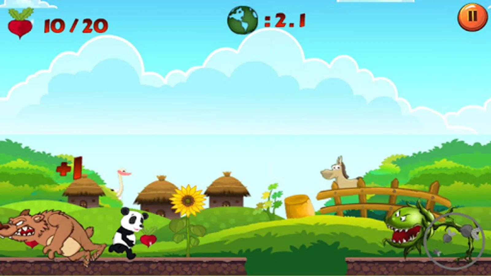 1. Tap the screen to make little panda run and tap throw button to throw radishes.