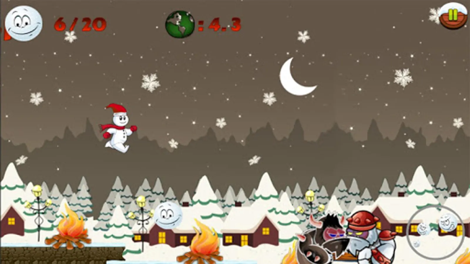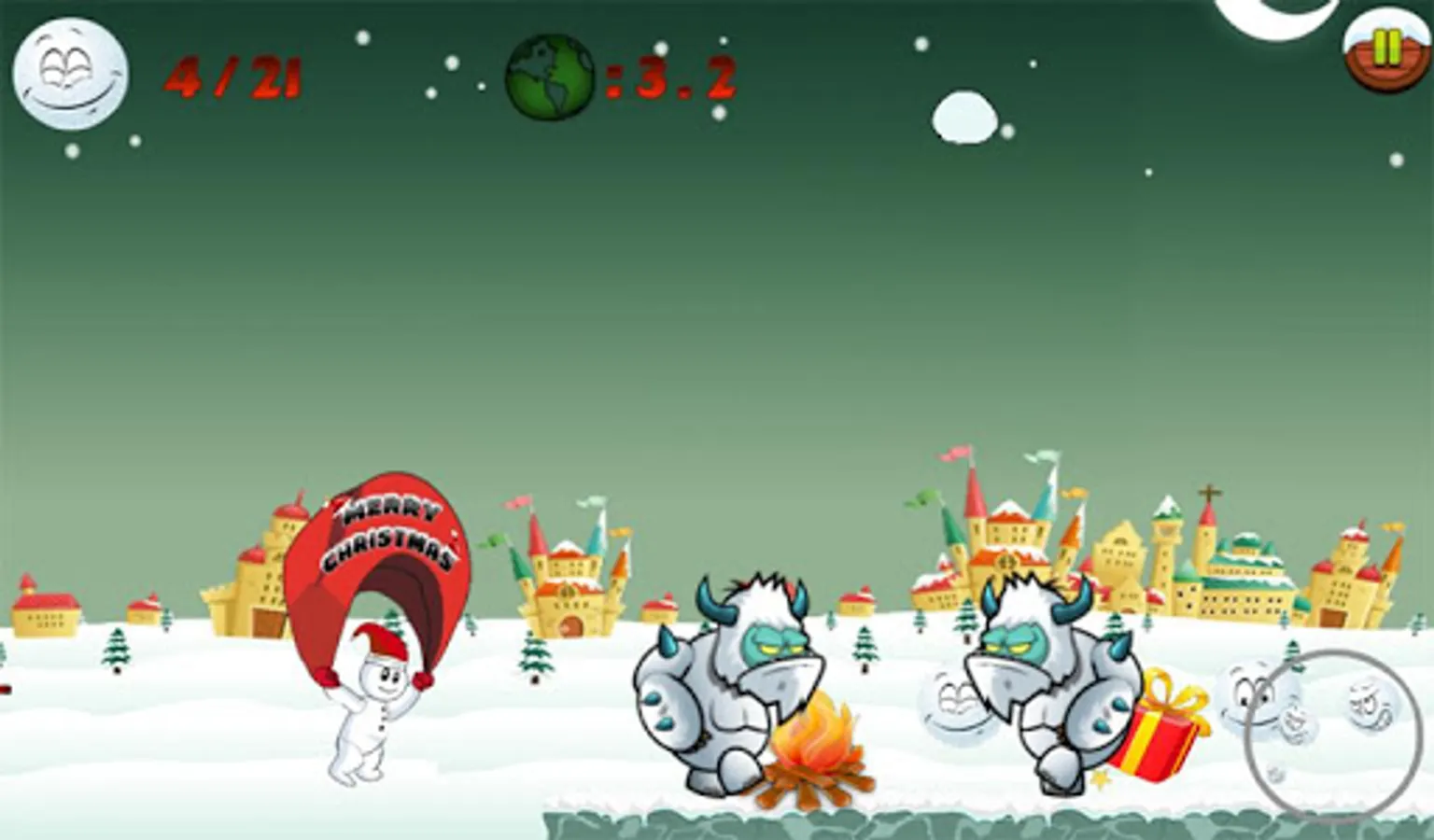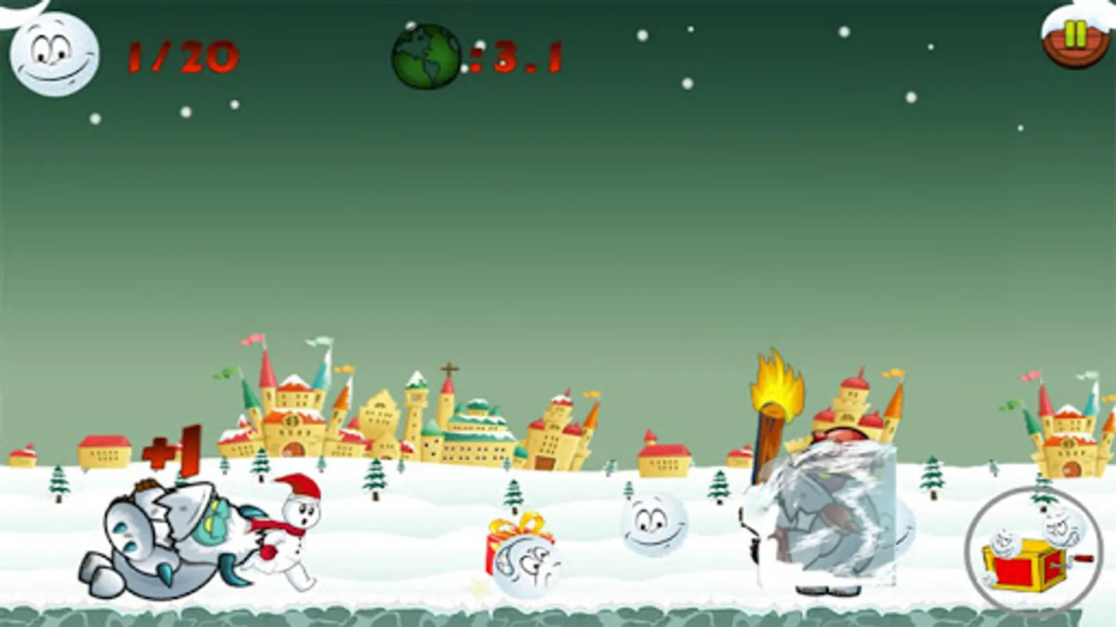 4. Run to the end of the icy winter and make a snowman to pass the level before Christmas Santa comes.