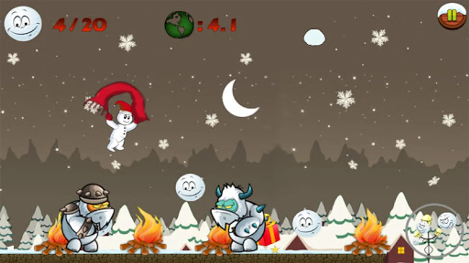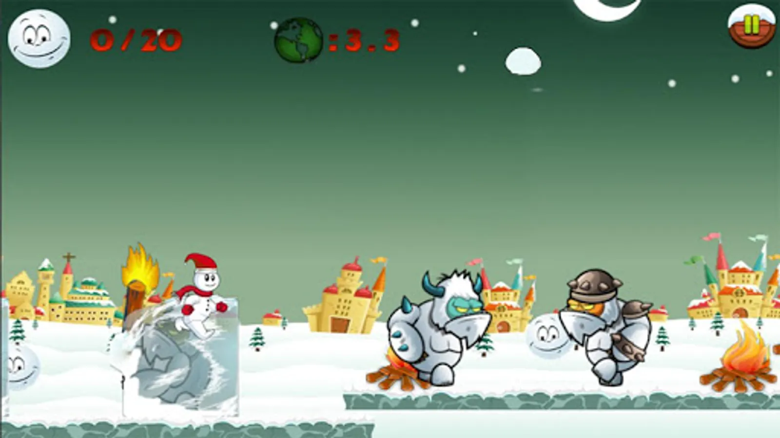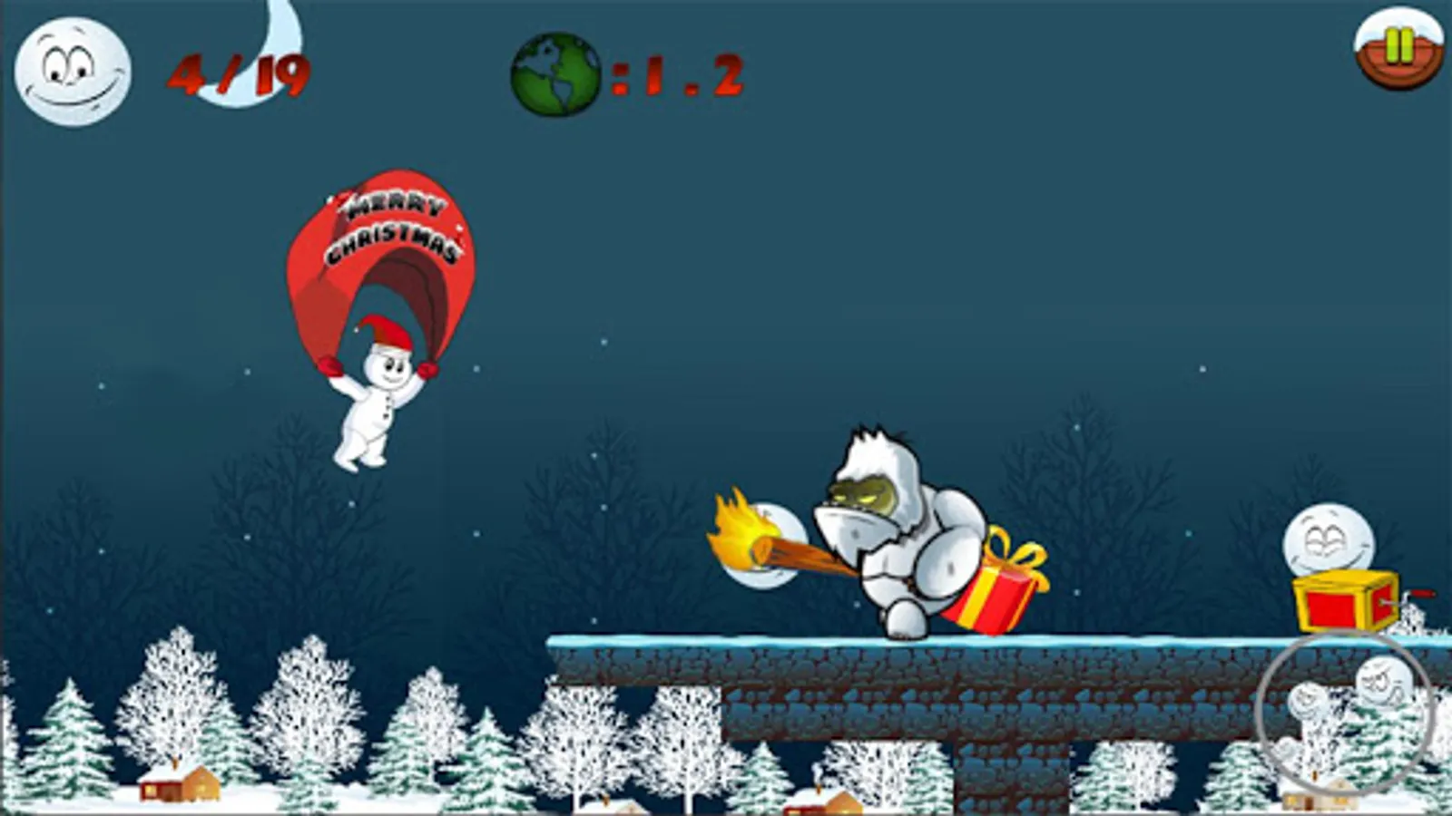 4. Run to the end of the icy winter and make a snowman to pass the level before Christmas Santa comes.