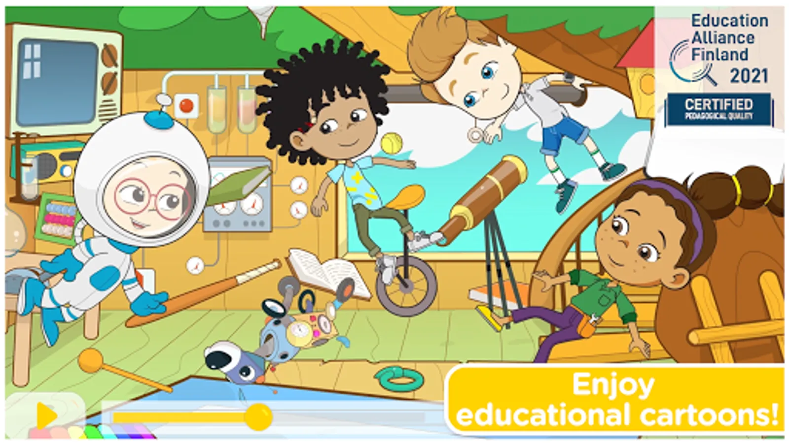Welcome to the world of the STEM Buddies. We use storytelling, animations and fun activities to spark children’s interest in science, technology, engineering and math (STEM) and introduce them to 21st century skills. This educational app is interactive and fun. it is original, and high quality. It is created by highly qualified educational experts, and is certified for educational pedagogy by Educational Alliance Finland since 2019.
