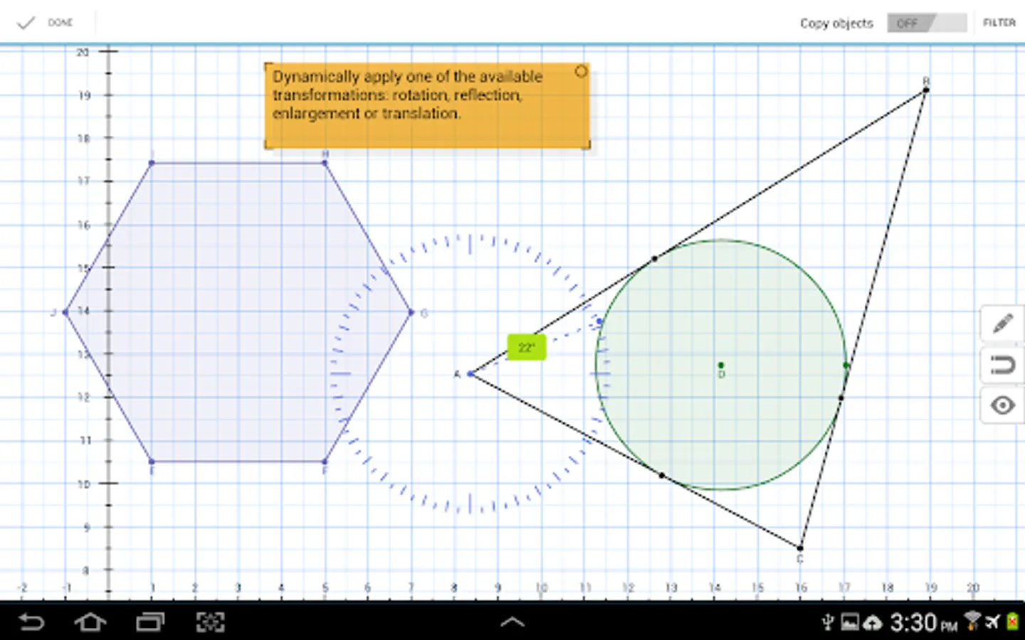 - Transformation tools: rotation, reflection, enlargement, translation.