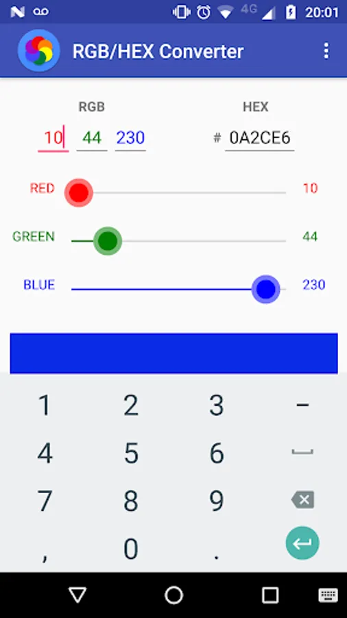 Convert color codes RGB to HEX and vice versa using only your smartphone. Created to assist front-end developers, this is a free tool that can convert quickly and easily the color codes given a code to a specific color in any of the most used formats in the world Front End ..
