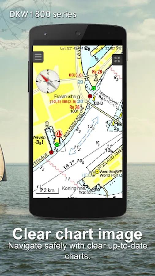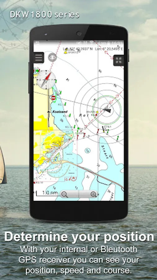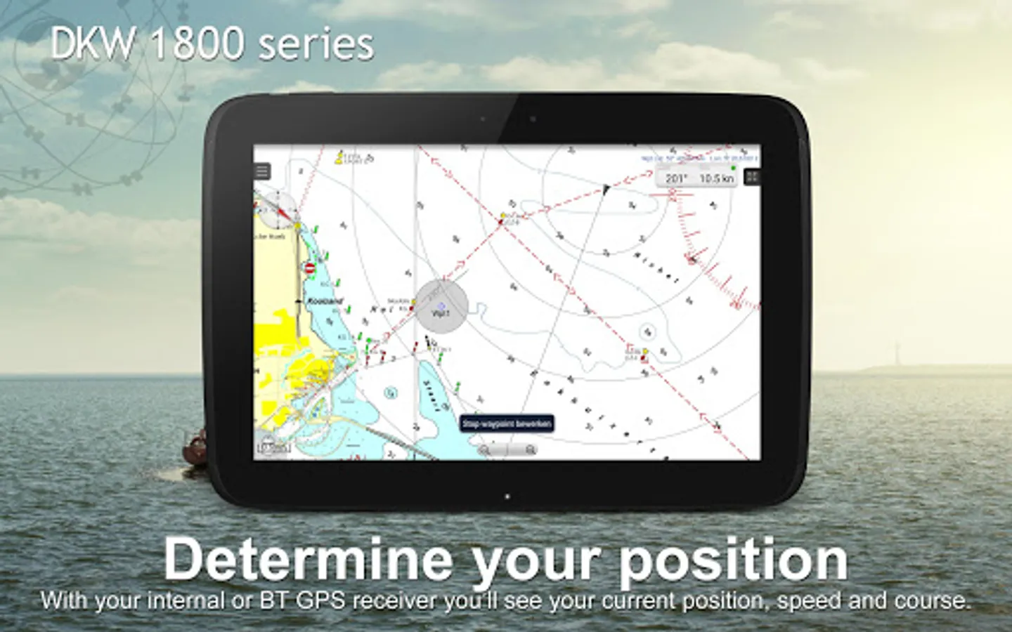 This app can be used as a substitute for the 1800 series paper charts of the Dutch Hydrographic Office. The DKW 1800 series are a set of digital nautical charts of the Dutch coastal waters, based on 1800 series charts from the Dutch Hydrografic Office, including weekly updates of the 'Berichten aan Zeevarenden' (BaZ) and extra depth information from the 'Wadvaarders'.