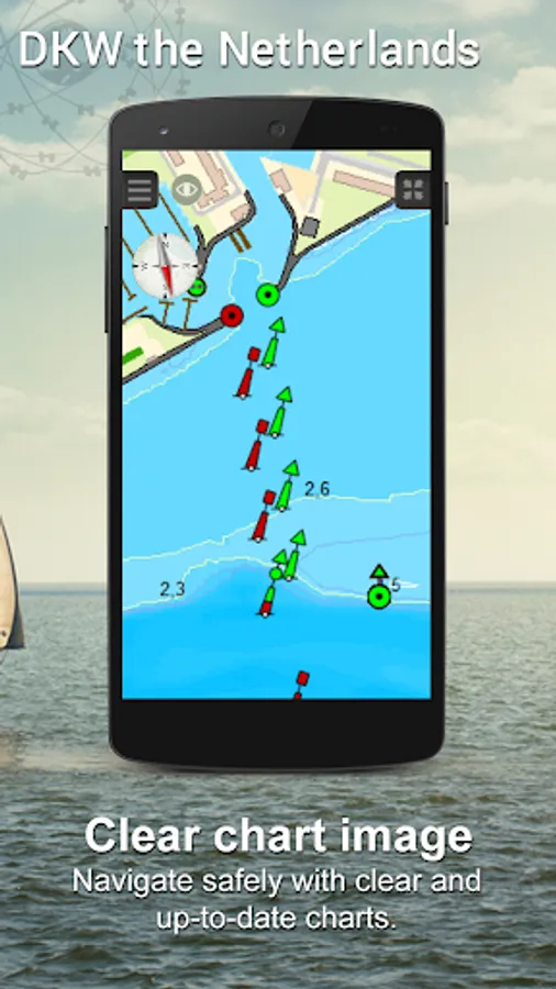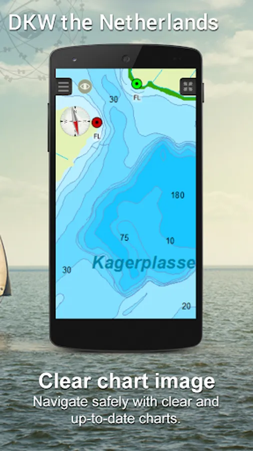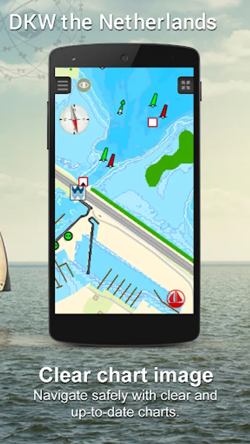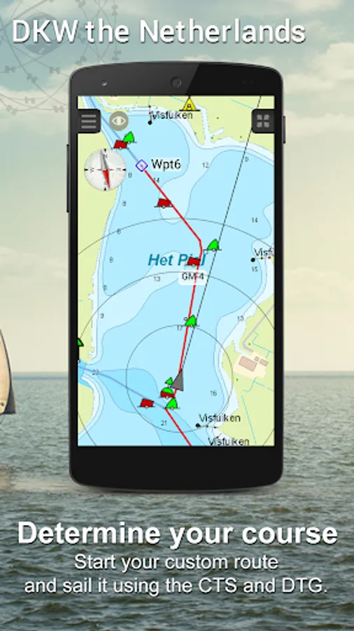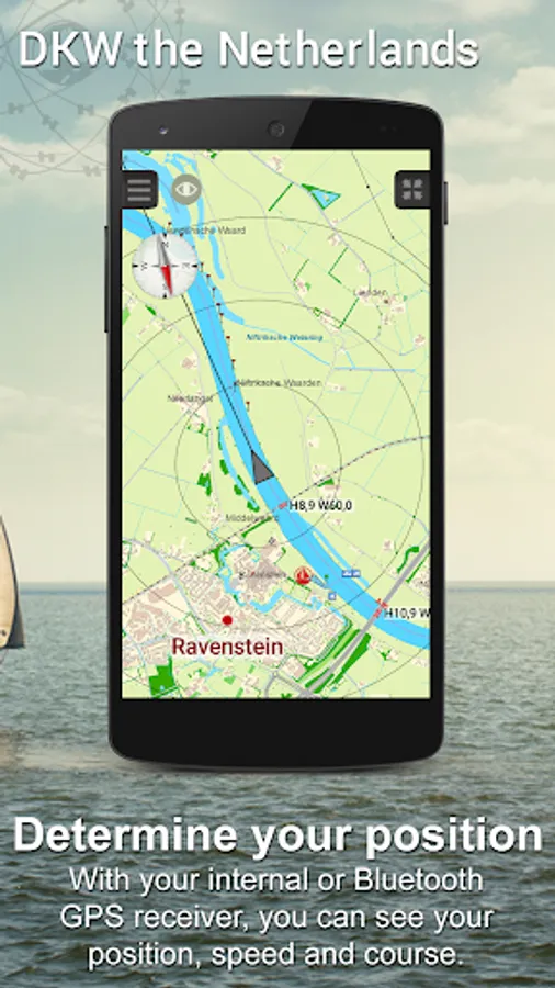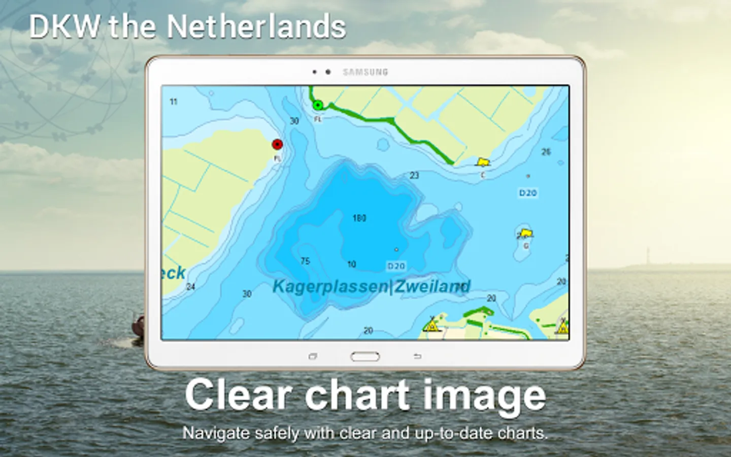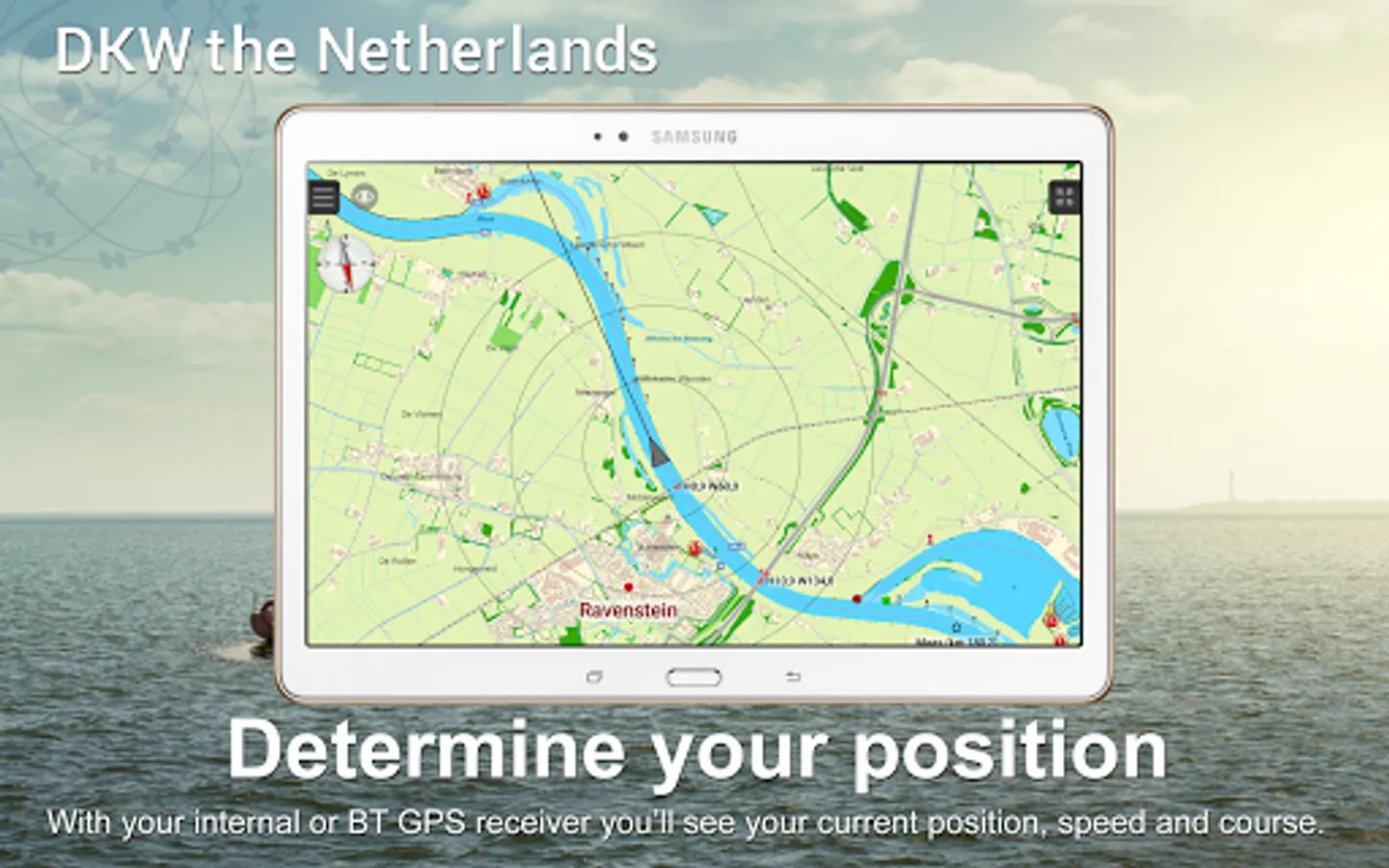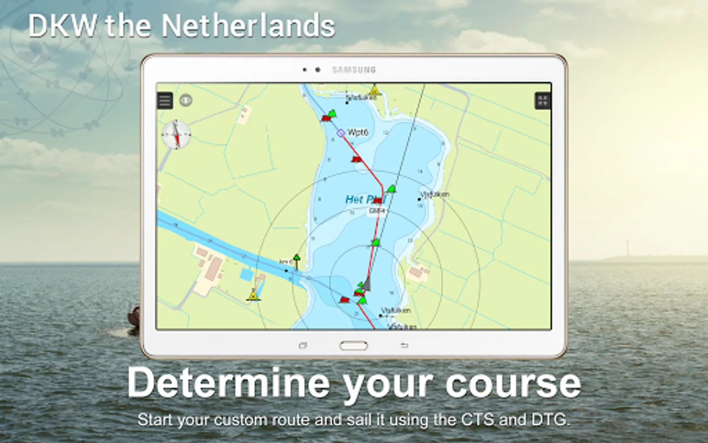 Navigational app with a subscription service for the Dutch inland water chart 'DKW the Netherlands' with the option to easily create simple routes. Navigating on a tablet or smartphone becomes particularly suitable for sailboats and motorboats as well as dinghies, fisherboats and canoes.