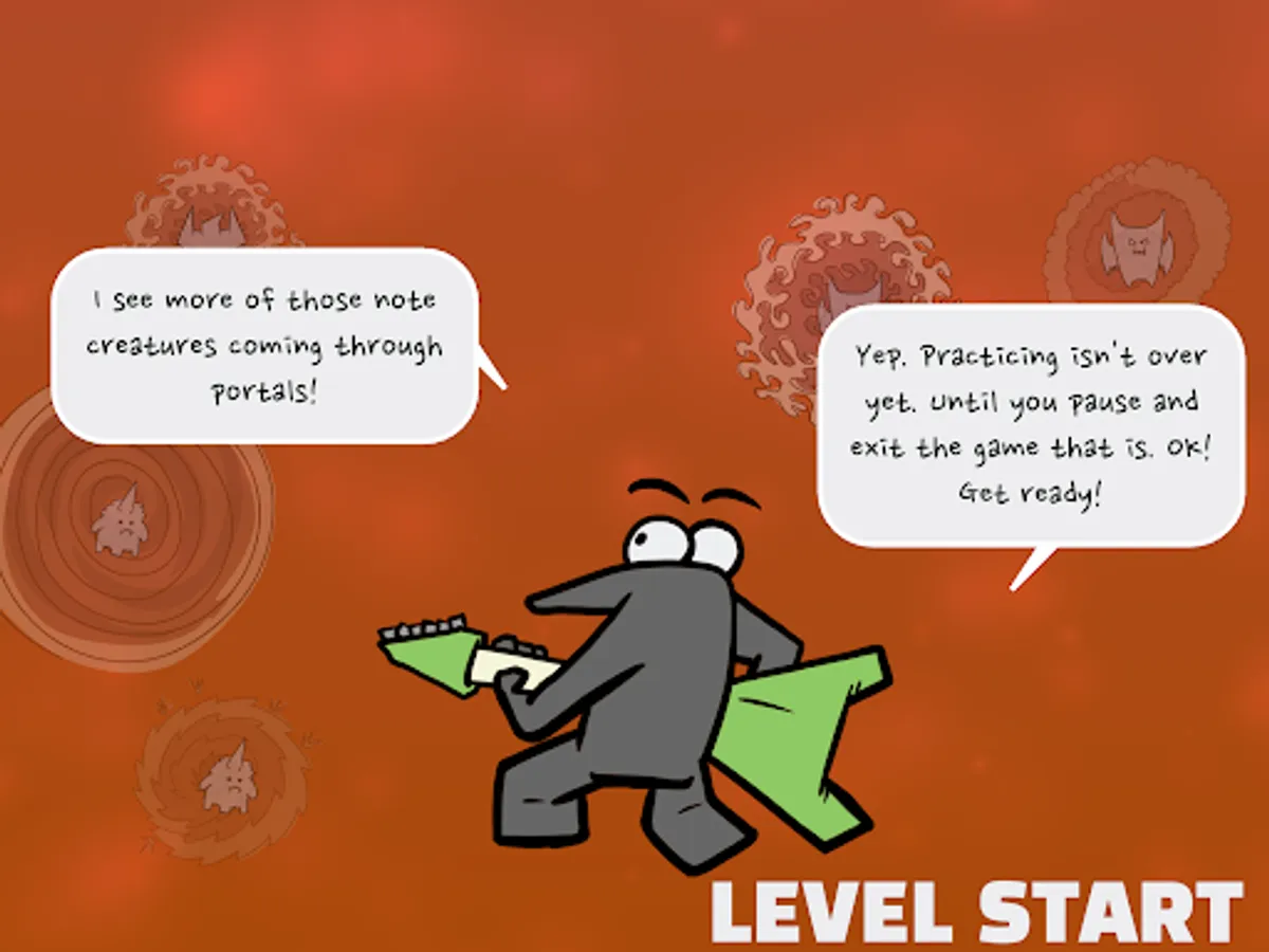 - **Practice mode**: play any guitar as an interactive chart of notes without the pressure of the mysterious portal creatures.