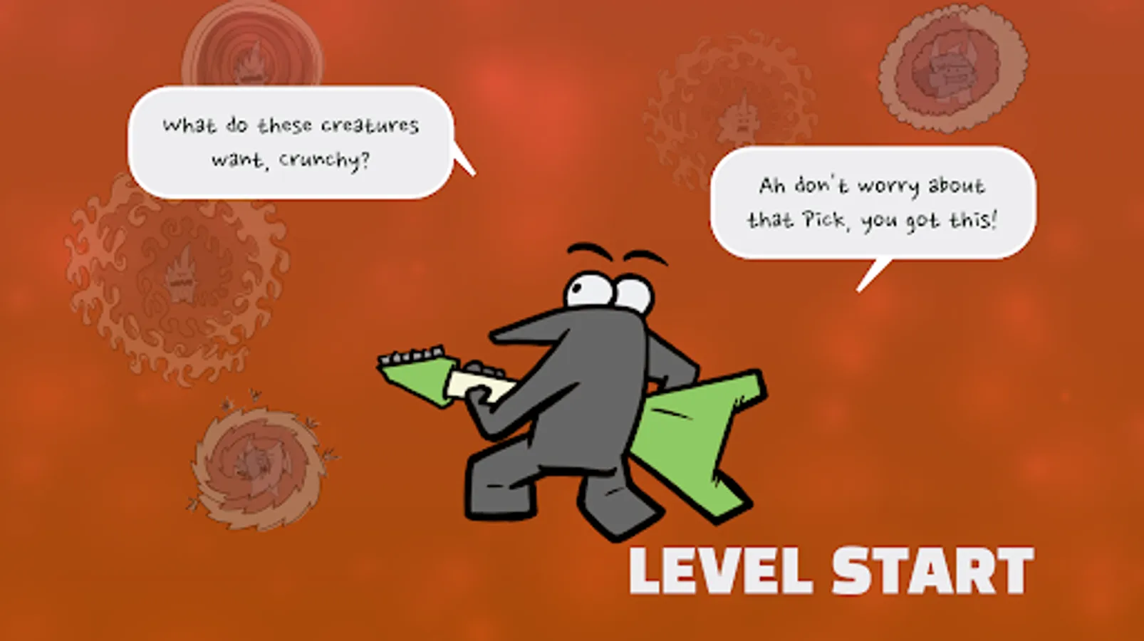 **Crunchy** the guitar is an old friend of Pick's family now helping Pick learn to be a confident musician.