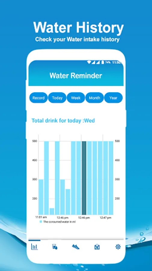 Step Counter -Pedometer & Drink water Reminder has the setting options through which you can set the goal of step counter, pedometer and set the goal of drink water, how many water you have to drink today. These all the options you have in setting and a lot more. This app is the best app to design for health Step Counter -Pedometer & Drink water Reminder is best app for pedometer and water drink reminder. This app have the history of Drink water reminder and pedometer also so you can check it in which date how much water you have drink? And your step counter history also.