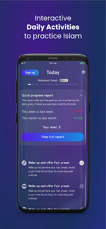Get daily customized activities — be a better Muslim and a healthier, fit, and active person in general. These include prayers, diet, exercise, reading, and a lot more!