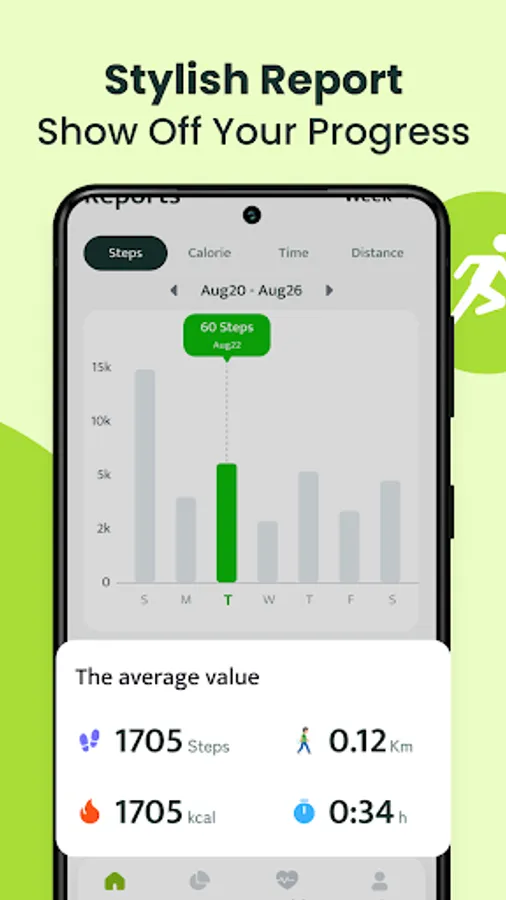 📈 Progress Tracking: Keep track of your walking tracker progress over time with stylish and detailed reports.