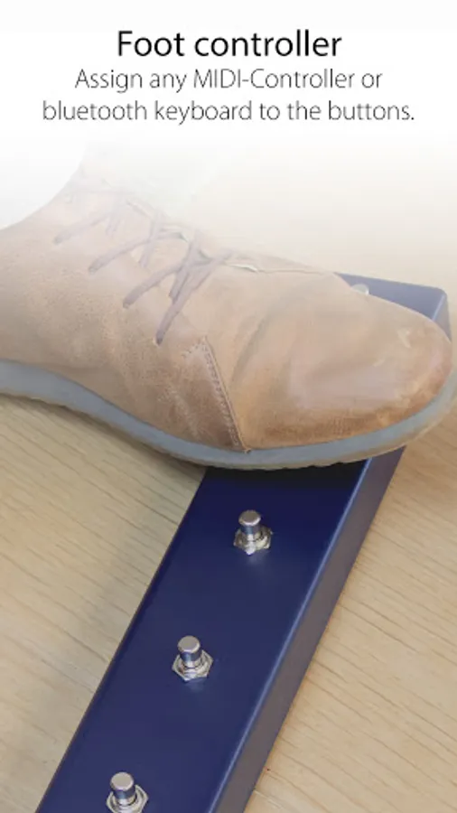 You can also use any MIDI-Controller or Bluetooth-Keyboard (keystrokes). Simply connect the to your phone or tablet and assign the keys to the buttons.