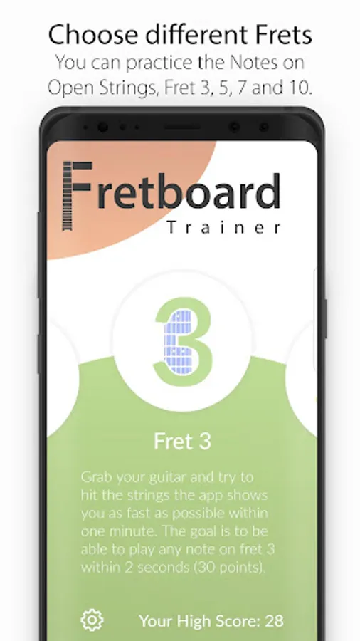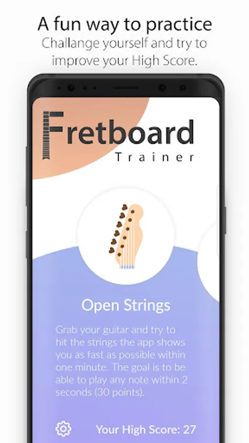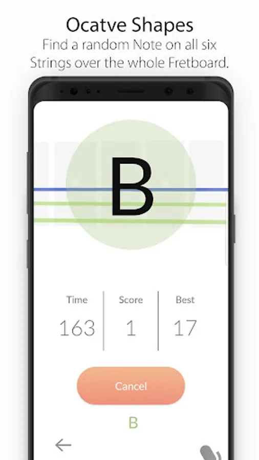 In the Octave Shapes practice the app shows you a random note and asks you to find it on all 6 Strings. You have 3 Minutes to get as many Notes correct as you can.