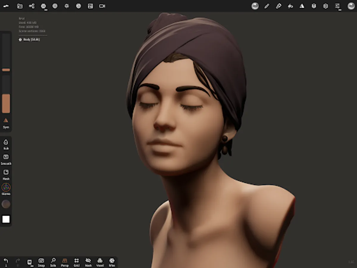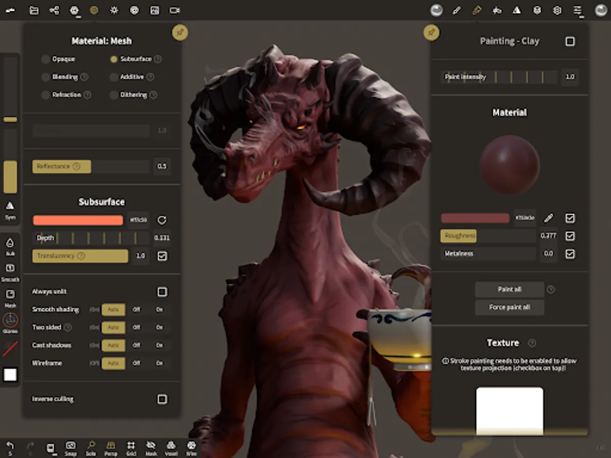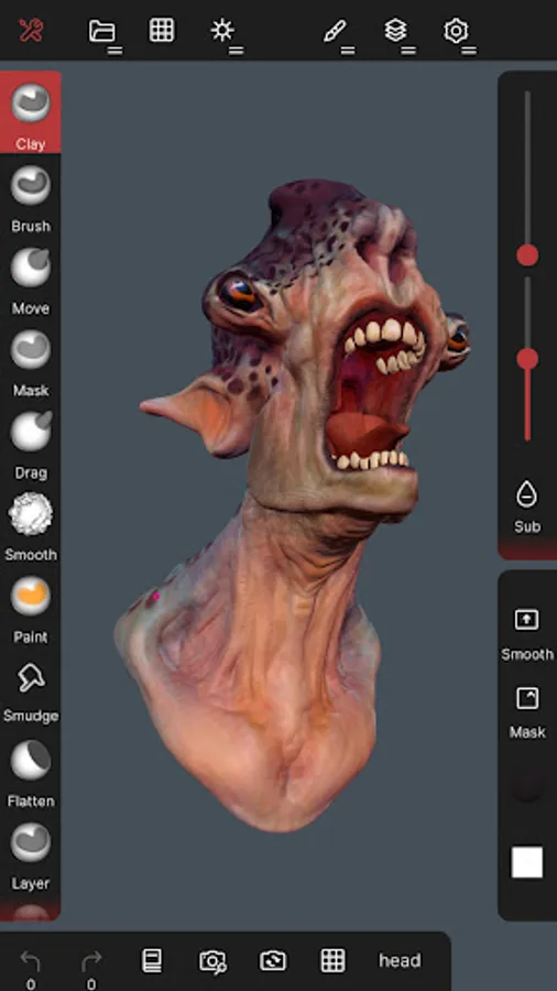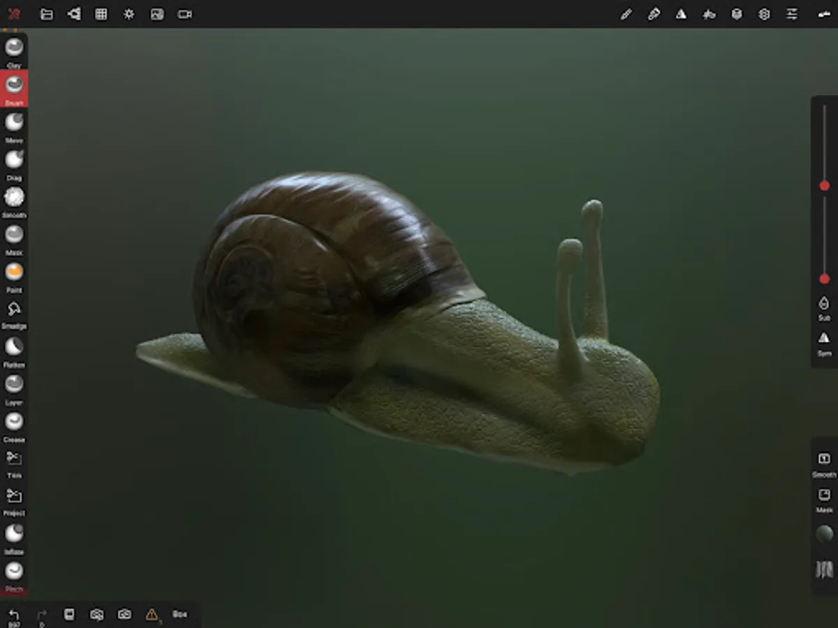 Clay, flatten, smooth, mask and many other brushes will let you shape your creation.