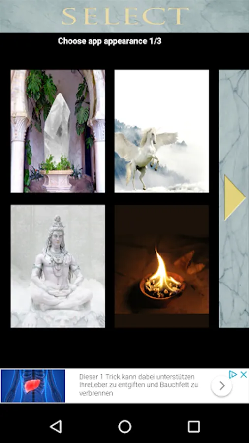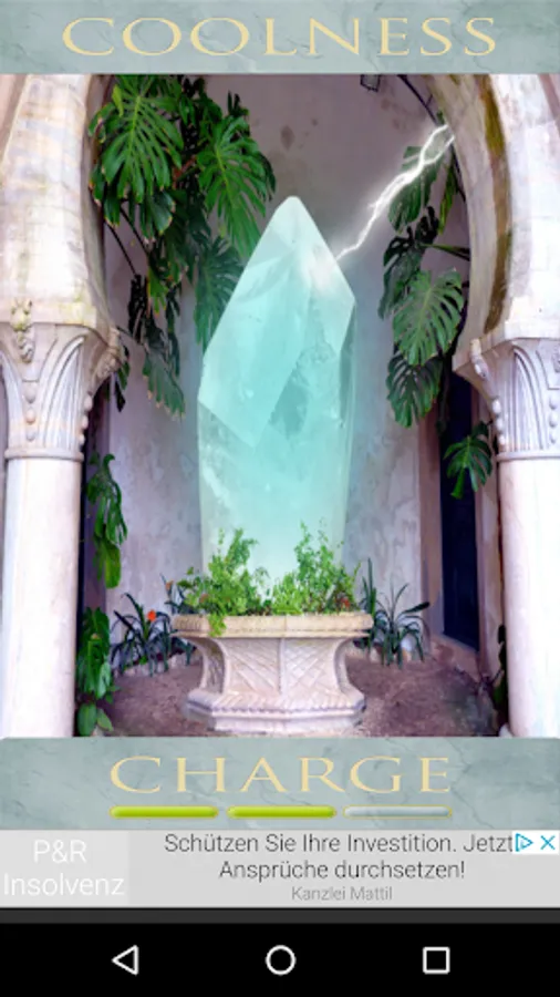 This app is set up as a magical temple like situation with mystical indian look. The atmosphere is peaceful and quite. You have the option to charge up an ancient crystal with a selected boost and touch the crystal to imagine you would then get this positive boost.