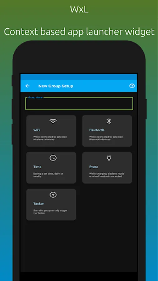 WxL is a widget for your home screen that allows you easy access to specific apps you need during specific scenarios, such as time of day or location that works with any home screen