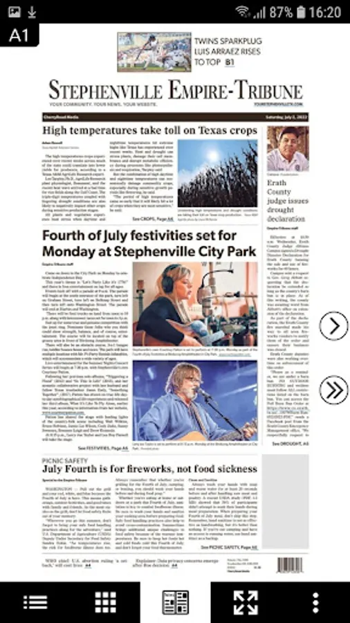 The Stephenville Empire Tribune eEdition is an exact digital replica of the printed newspaper. Readers of the paper can flip through the pages, read stories, photos, and view ads just they appeared in print.