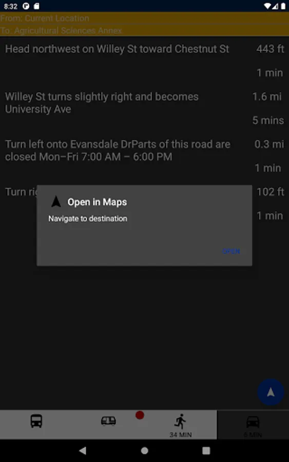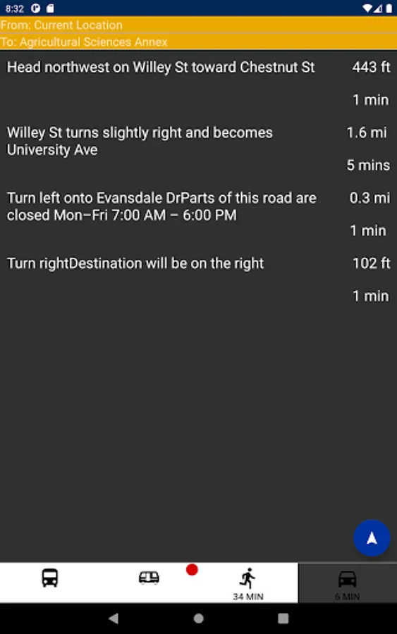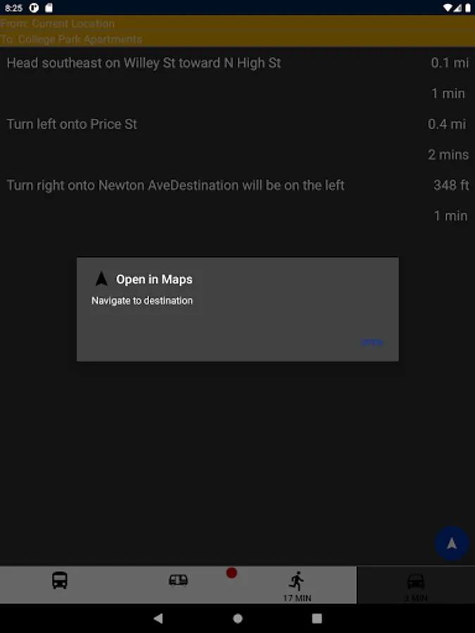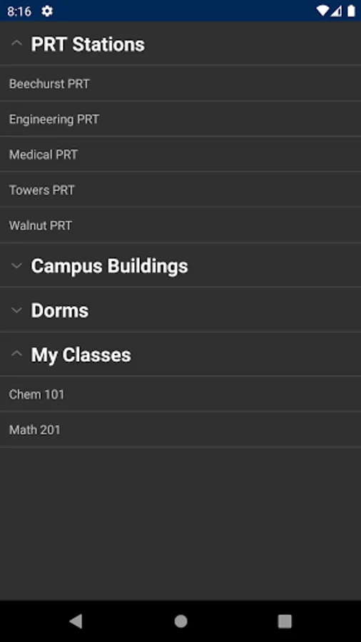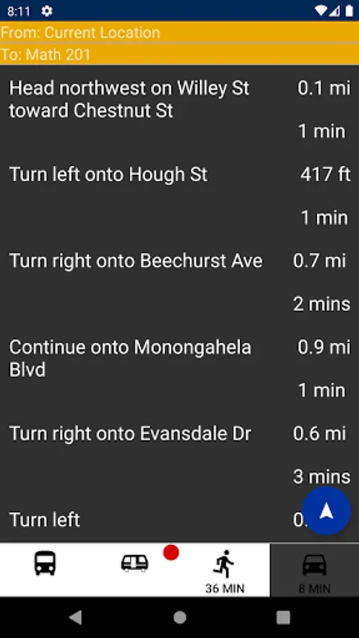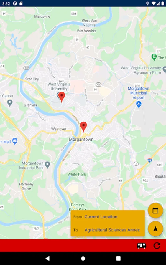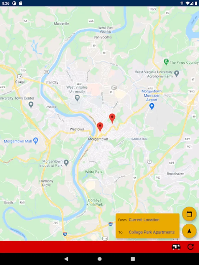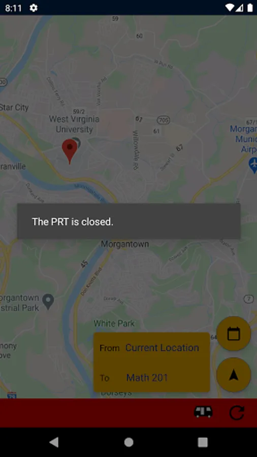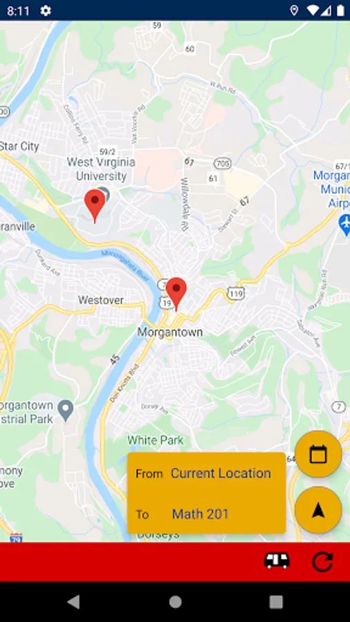 DubVTransit2 allows West Virginia University students and game day fans to calculate the fastest route to their campus destinations. When the PRT goes down, don't waste time juggling websites, bus schedules, and others apps. Just enter your destination to quickly learn the fastest way to get there now.
