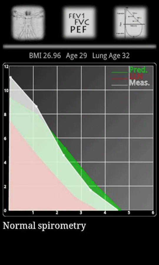 Spirodroid is a valuable aid in the interpretation of Spirometry for Pulmonologists, Physicians of other specialities and Medical Students. It represents one of the first specific applications for Pneumology.