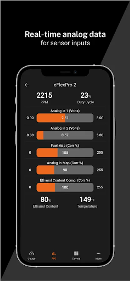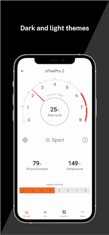 With eFlexApp you can monitor your eFlexFuel device in real time. eFlexApp recognizes your eFlexFuel device version and offers different features with each product. The app also enables adjusting of eFlexPlus and eFlexPro devices. Change language (English, French, Finnish), temperature unit (°F/°C) and theme (light/dark).