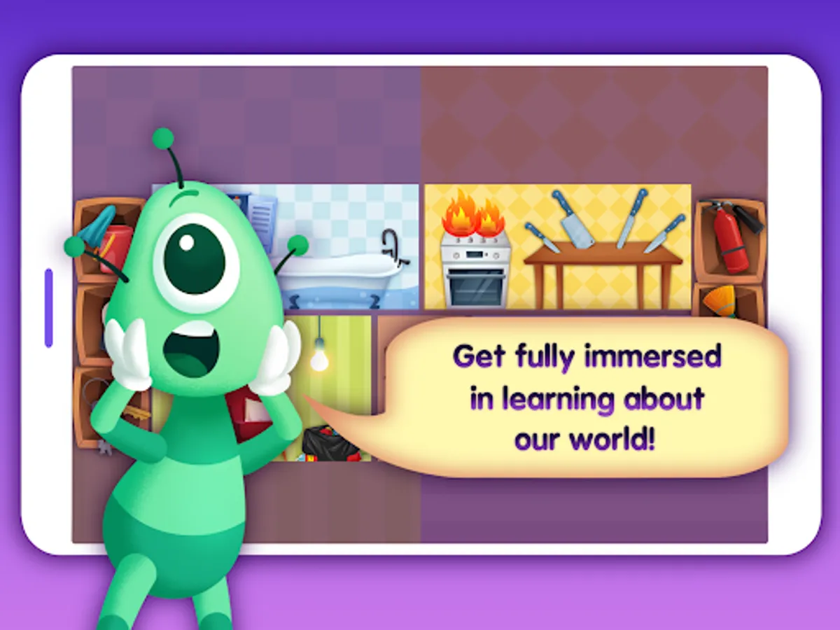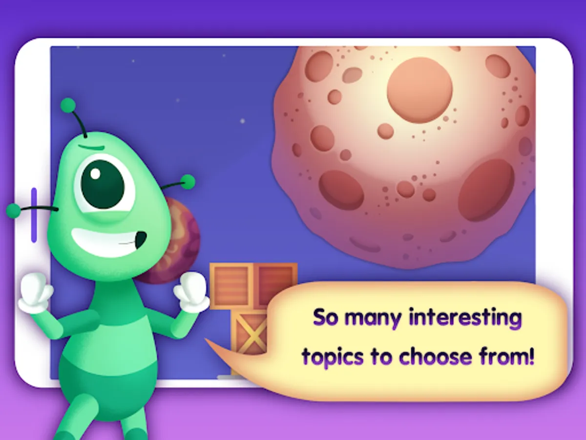A diverse collection of exciting mini-games for children will keep even the youngest space explorers engaged and explain different surprising phenomenon about our world. From the basic safety rules and to the depths of mysterious space and prehistoric times of dinosaurs – your child will learn about many interesting subjects while playing easy captivating games!