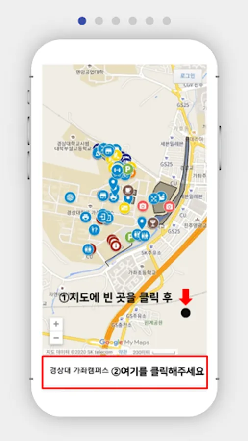 Gyeongsang National University is an assistant application. In order to conveniently use the facilities in the school, we provide directions around the current location, location of nearby facilities such as restaurants/cafes, convenience, and campus locations for outside visitors.