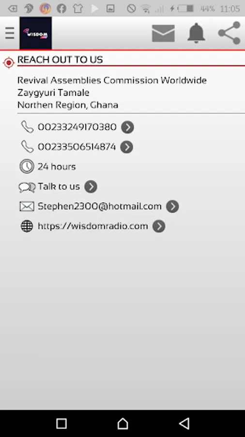 WISDOM RADIO IS ESTABLISHED BY REVIVAL ASSEMBLIES COMMISSION WORLDWIDE, TAMALE, NORTHERN REGION AND IT'S MANDATE IS TO REACH THE UNREACHED WITH THE WISDOM OF GOD.