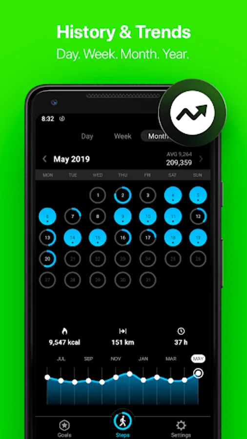 • Reach your goal: Walk more, Lose weight, or Improve health!