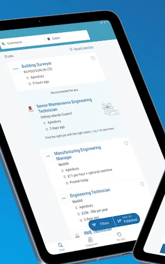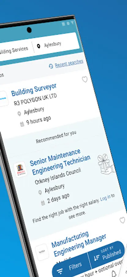 - Filter by relevance, salary, date or distance