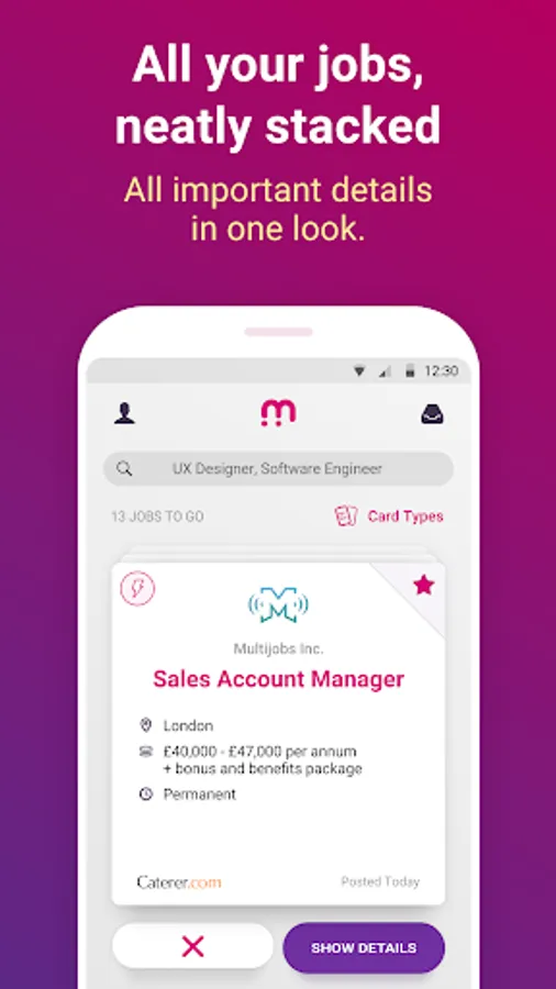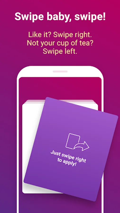 Plus, the more you tap, the smarter your jobsearch gets. Soon we’ll start recommending job opportunities you’d never even considered. It’s unsolicited advice you’ll wonder what you ever did without.