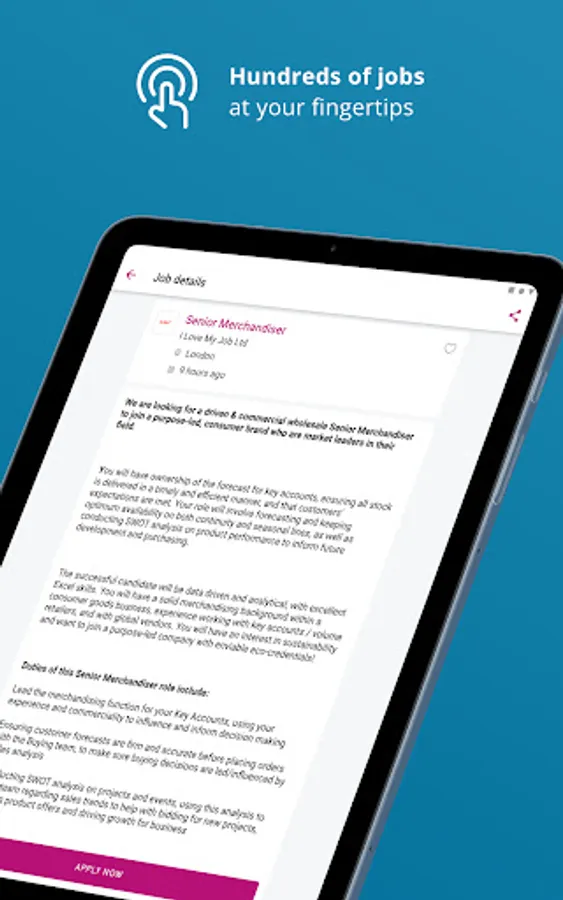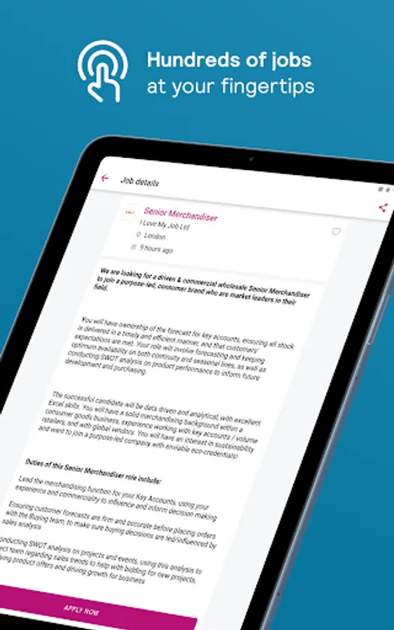 Whether you’re sat on the bus, walking through town or in the comfort of your very own living room, you can search and apply for jobs with our app in just a few simple taps. Complete with a wide range of Native features, it delivers an engaging user experience that will guide you through your search and apply in a series of quick and easy steps.