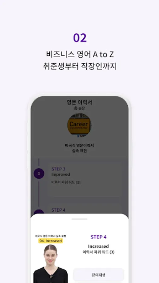 이력서, 면접, 발표, 오피스톡 등 상황에 맞게 배워요.