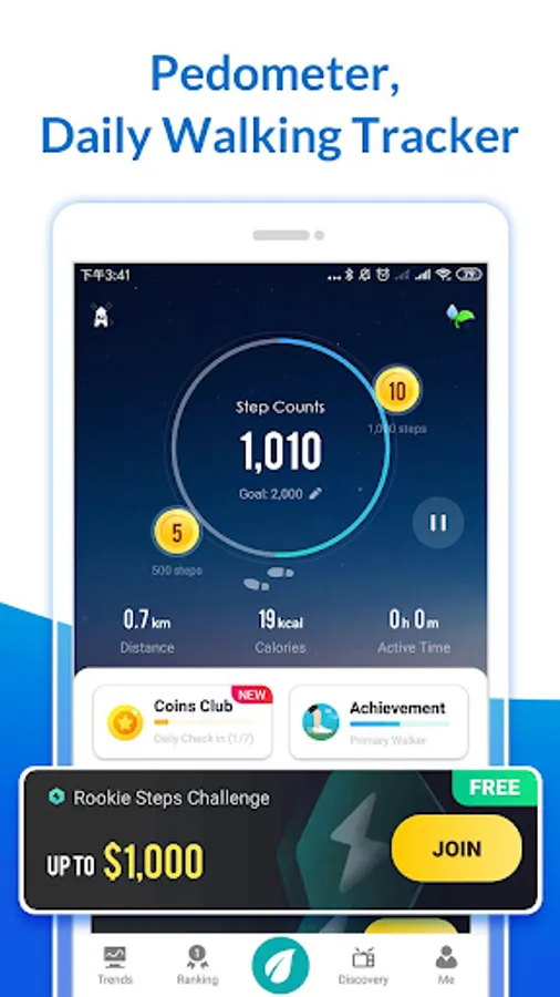 ➤Use 100 coins to sign up the challenge and you can earn more coins. Walk more and gain coins.