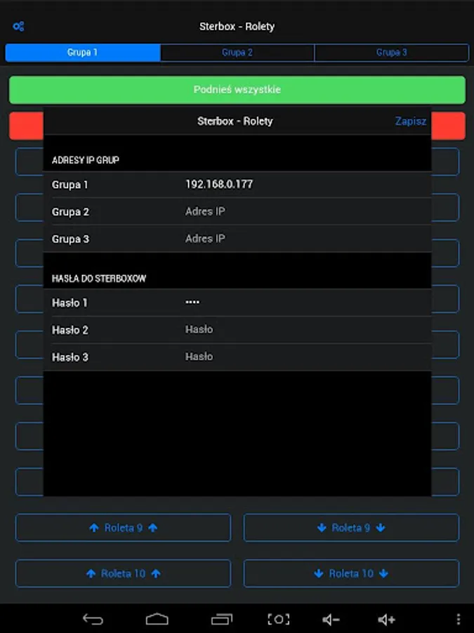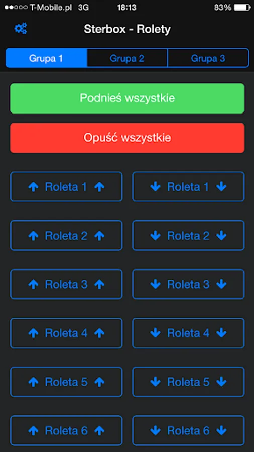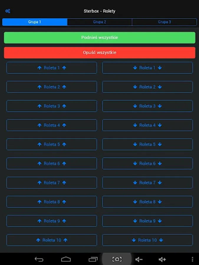 - On each screen, you can independently control up to 18 roller shutters and globally and leave all up. (With appropriate configuration function of lower or raise all may be limited to certain blinds)