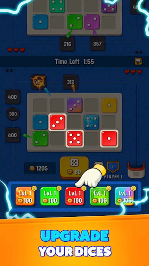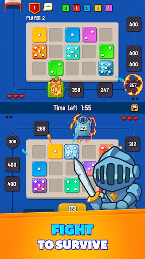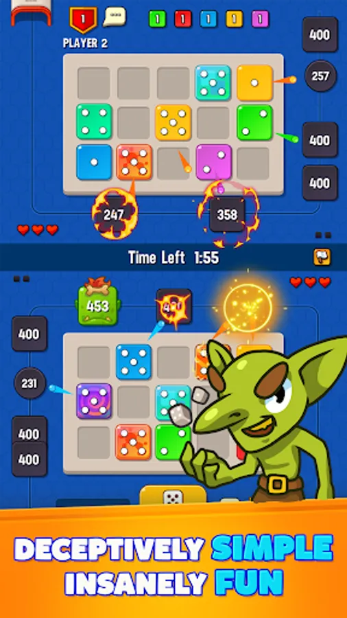Collect dices and find the best strategy to beat opponents offline in PvP mode