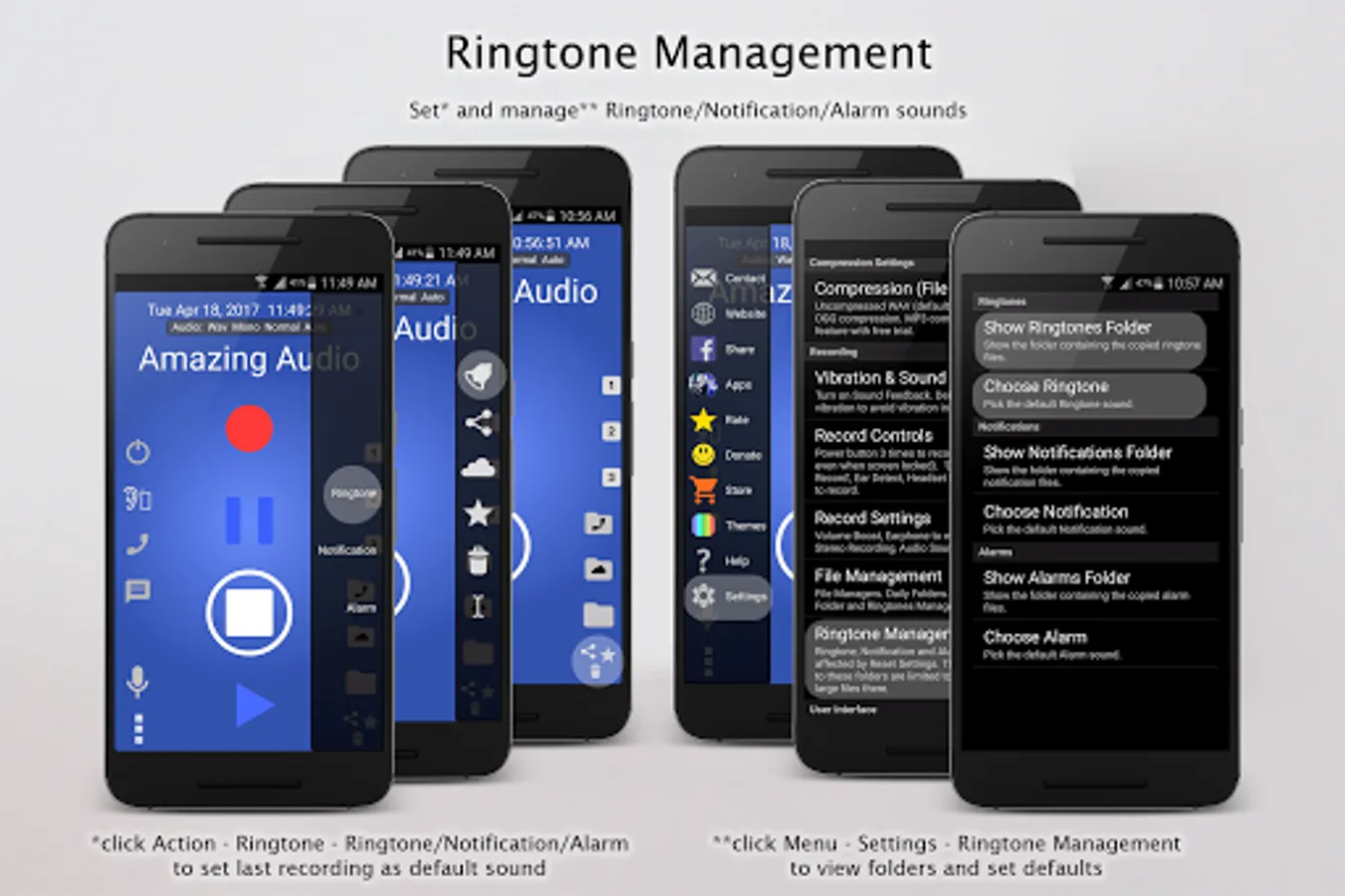 - set Ringtone, Notification, Alarm sound (manage - Settings - File Management)